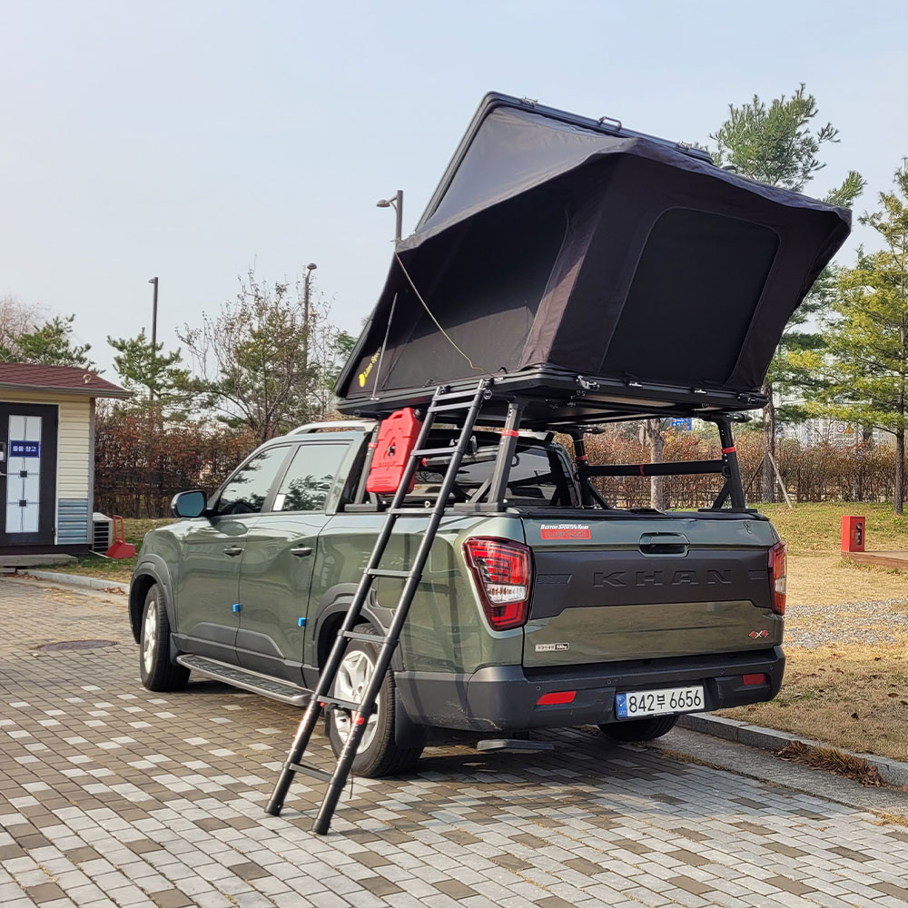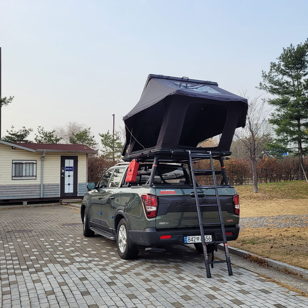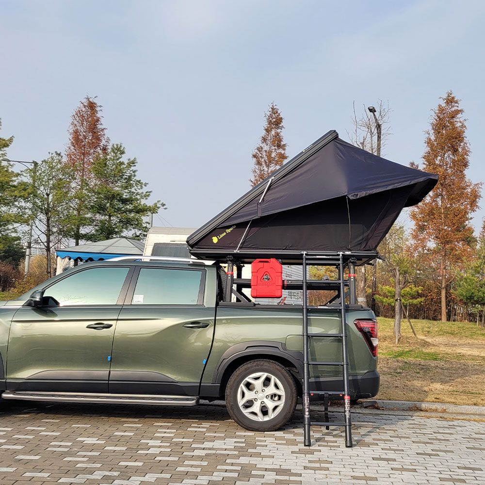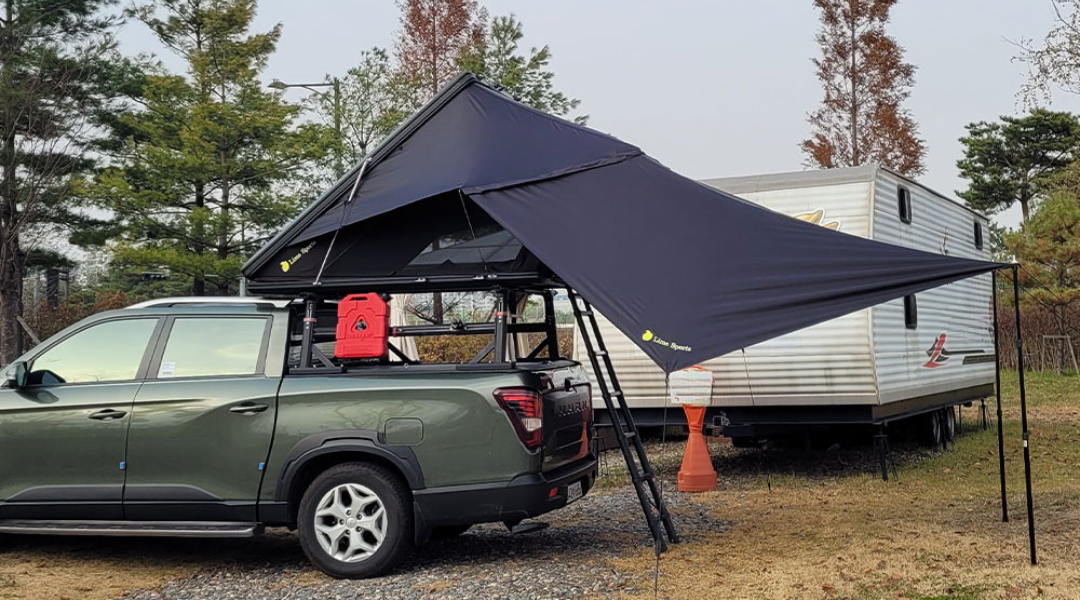 日差しや雨を防ぎ、快適性も向上。車上泊だけでなく、外でも楽しめる新しいスタイルのルーフテントです。